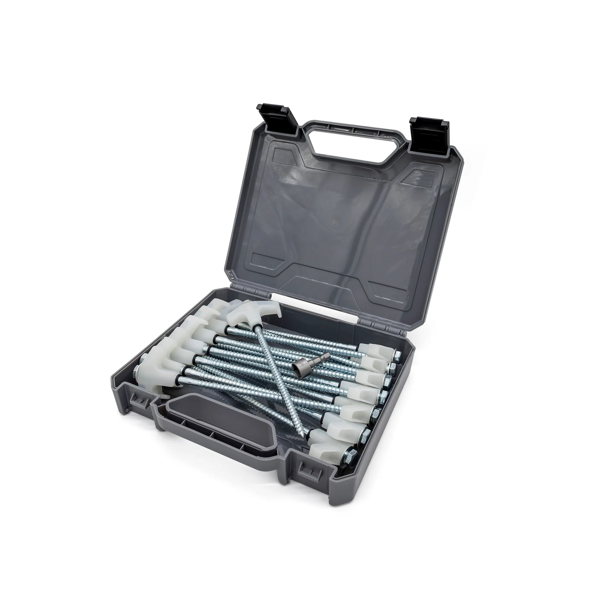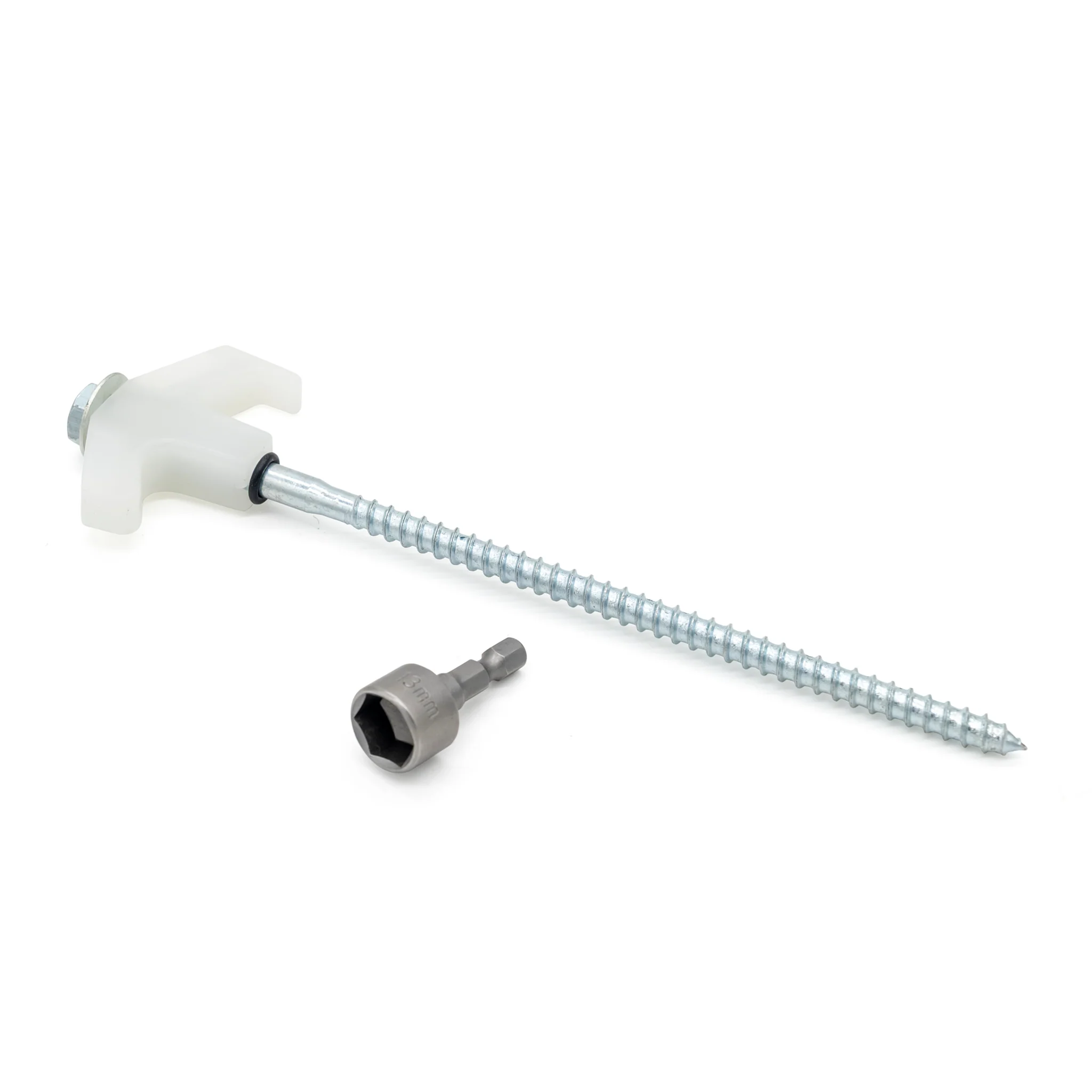 The Aussie Traveller galvanised Screw In Pegs are ideal for when the ground is too hard for your standard tent pegs. With a 13mm hex head located at the top of the peg, they are extremely easy to use. The set comes with 15 pegs along with a 13mm hex head socket that allows your drill to do all the hard work for you. If you don’t have a drill, you can easily use a shifter or a 13mm spanner and you’re good to go.