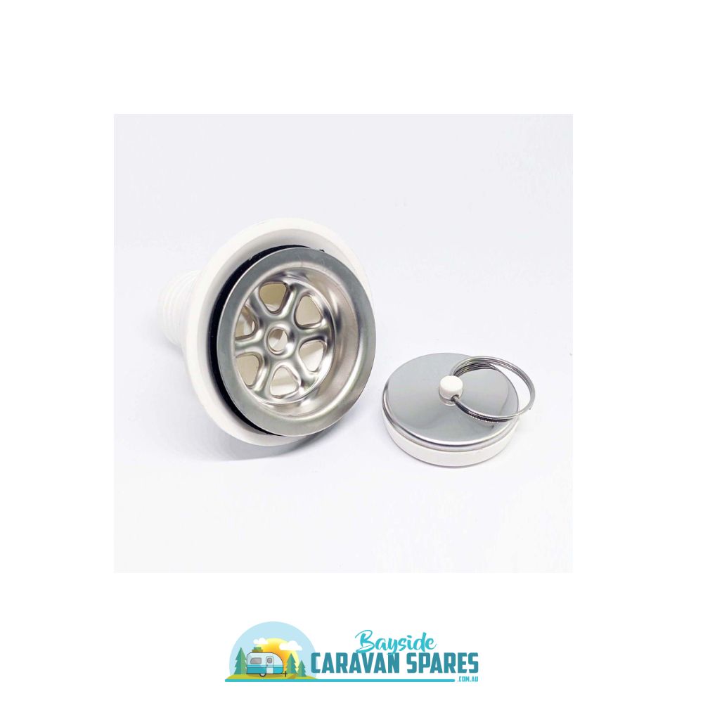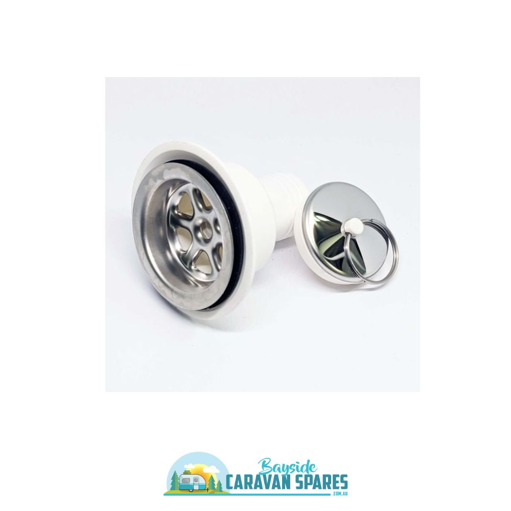 SMEV White PVC waste fitting, Stainless steel strainer and plug.