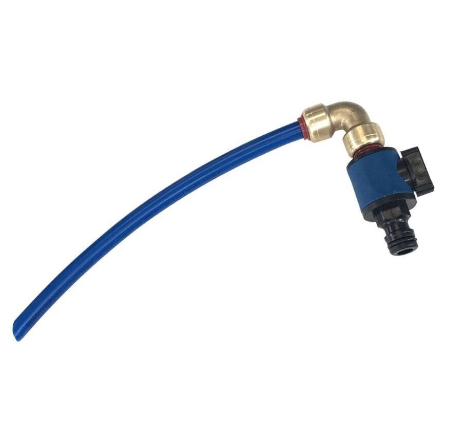 The long flexible tubing allows you to direct the water straight into the tank, while also allowing air to escape.