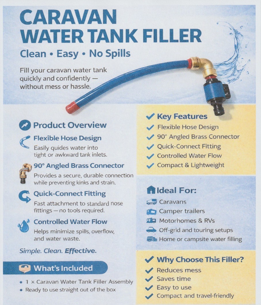 The new Quick Fill caravan water tank filler makes it so much easier to fill your water tanks.